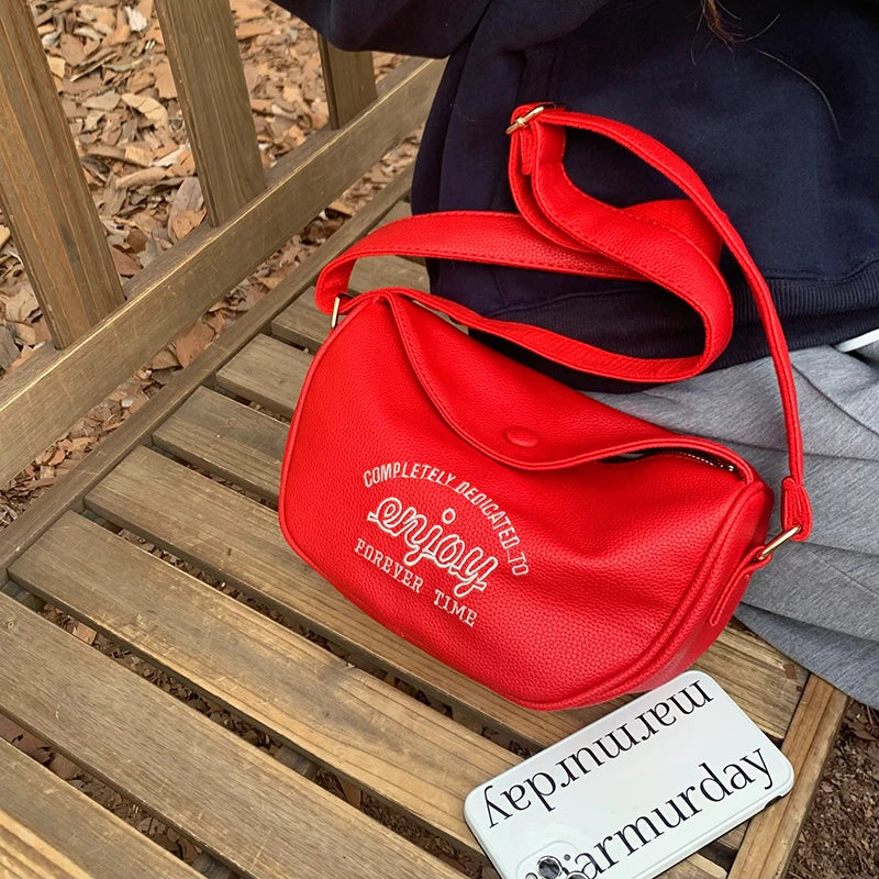 Embroidery Women's Letter Hobos Bag Pu Leather Ladie Shoulder Bags
