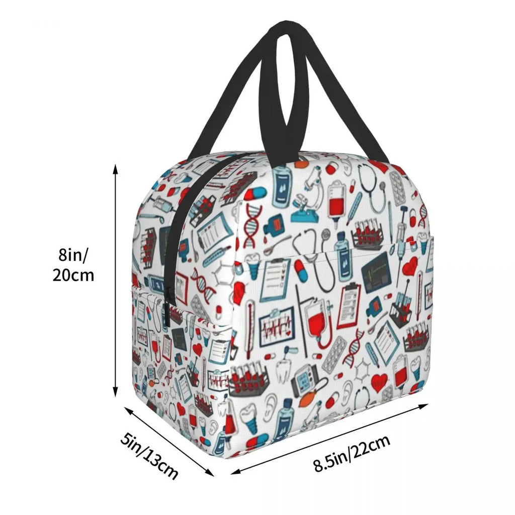 Stay stylish and organized with this waterproof nurse pattern cooler thermal lunch bag. Perfect for carrying your food wherever you go.