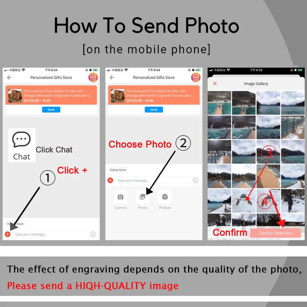 Engraved PU Leather Men's Bifold Wallet with Photo Inscription