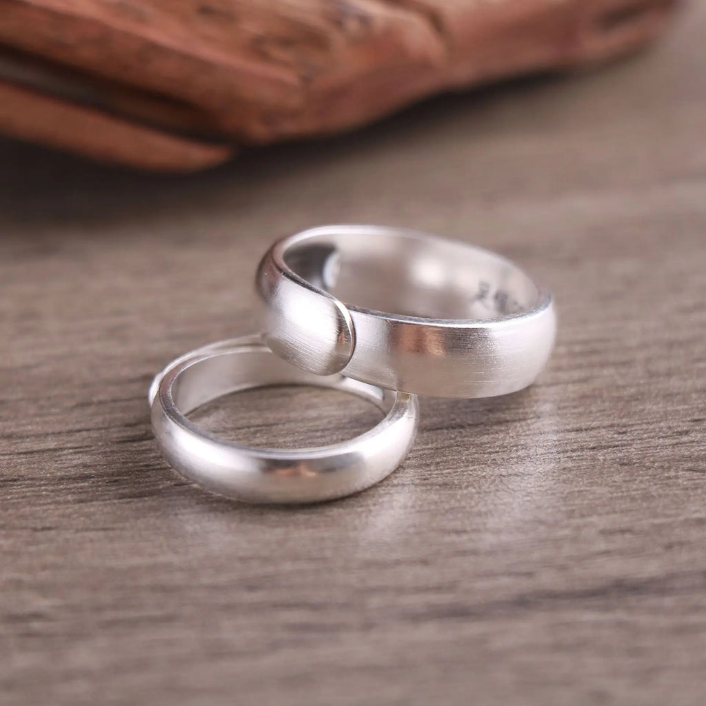 This fine silver ring is made of 999 sterling silver, ideal for a couple's holiday. It features an ethnic ancient design with a restoring pure smooth finish.