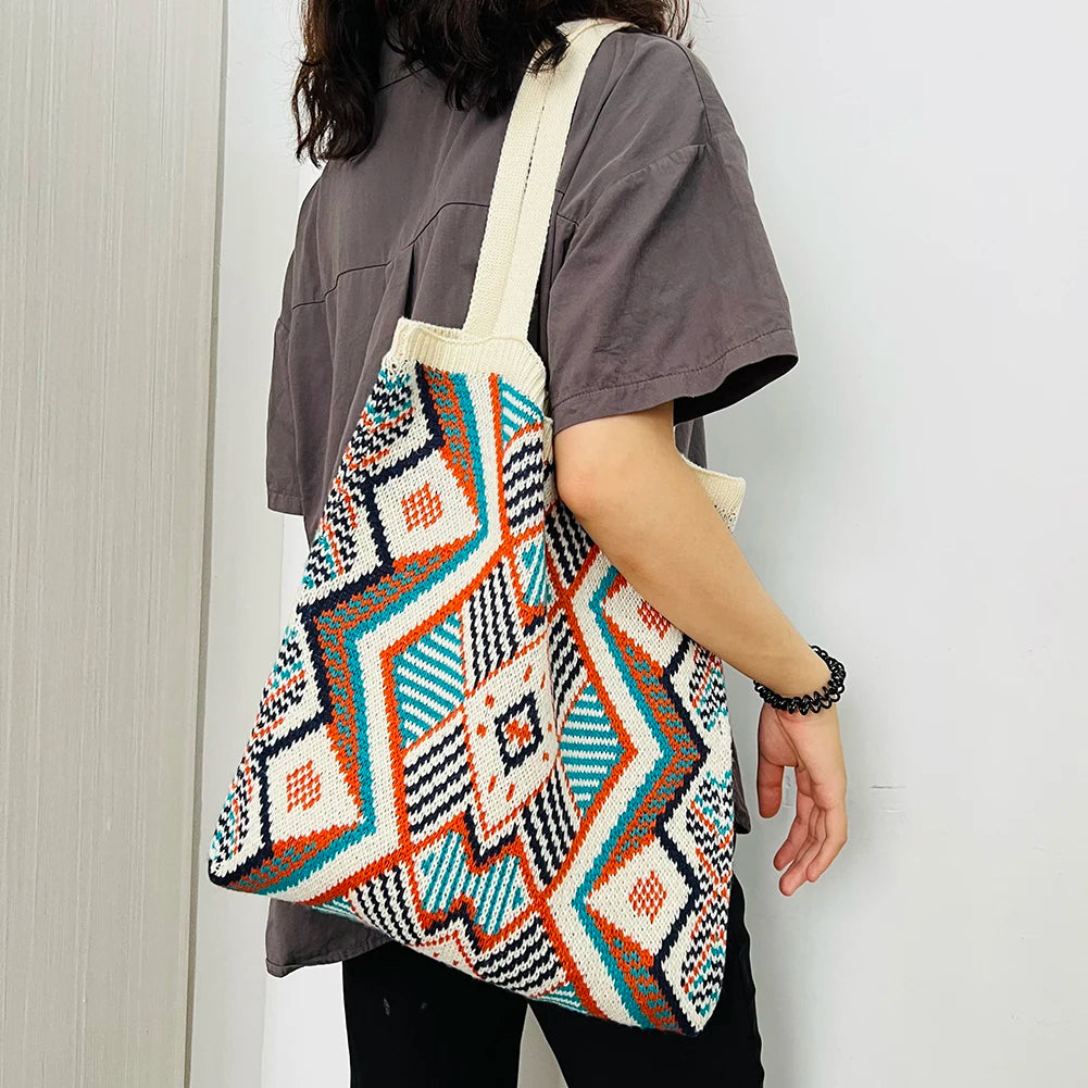 Ethnic Boho Crochet Knitting Shoulder Tote Bag Travel Handbag
