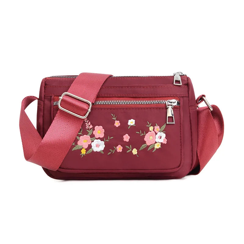 This casual shoulder bag features intricate ethnic embroidery, perfect for middle-aged and elderly women. It offers a spacious design for daily essentials.
