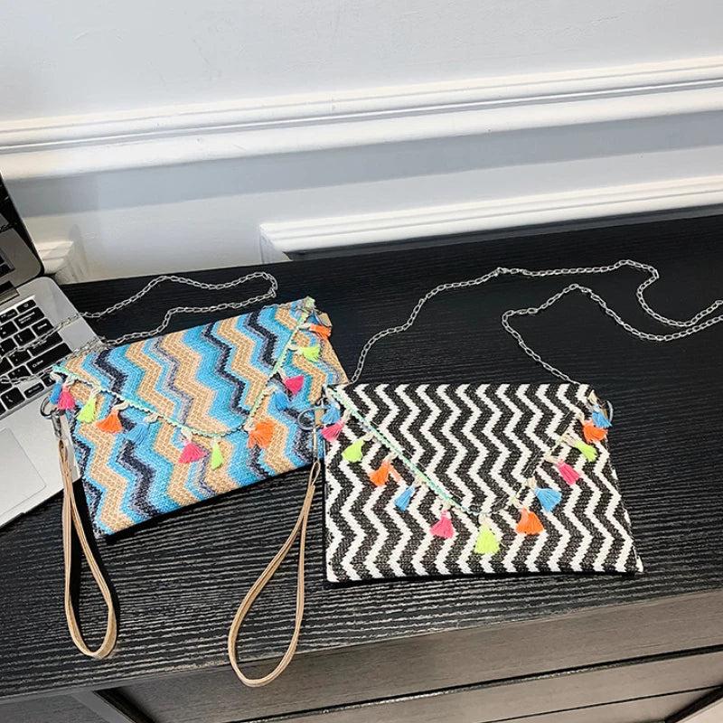 Ethnic Stripe Chain Shoulder Diagonal Bag