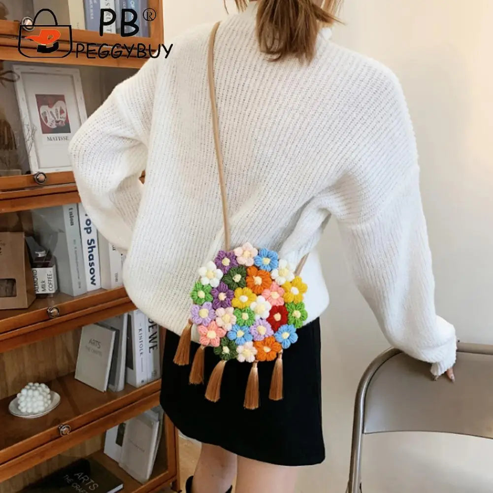 Elevate your style with this fashionable hand-woven shoulder crossbody bag featuring ethnic embroidery and hemp tassels. Made from cotton, this versatile purse adds a unique touch to any outfit.