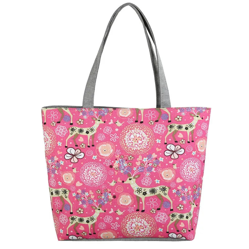 This ethnic style handbag is made of high-quality printed canvas, perfect for everyday use. Features a large capacity and ideal for shopping trips.