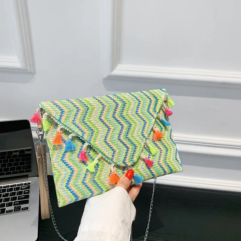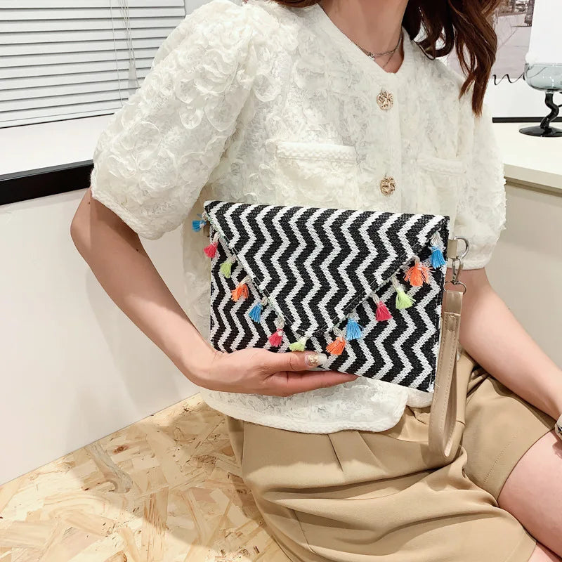 This handbag features ethnic style stripe printing, adding personality and fashion to your look. It can be worn as a chain one shoulder or diagonal bag.