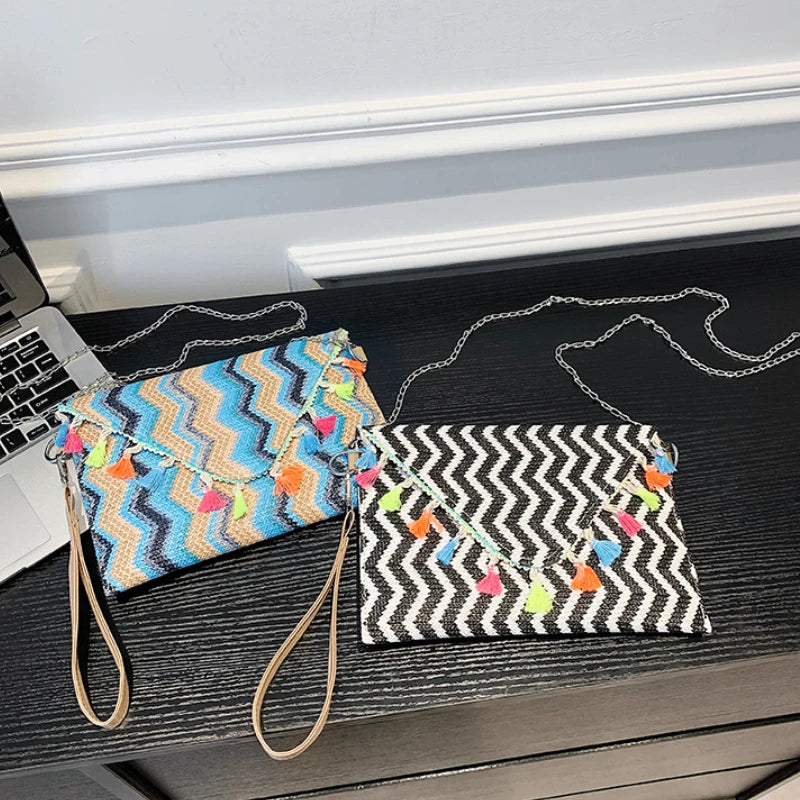 Ethnic Style Stripe Printing Handbag Chain One Shoulder Diagonal Bag