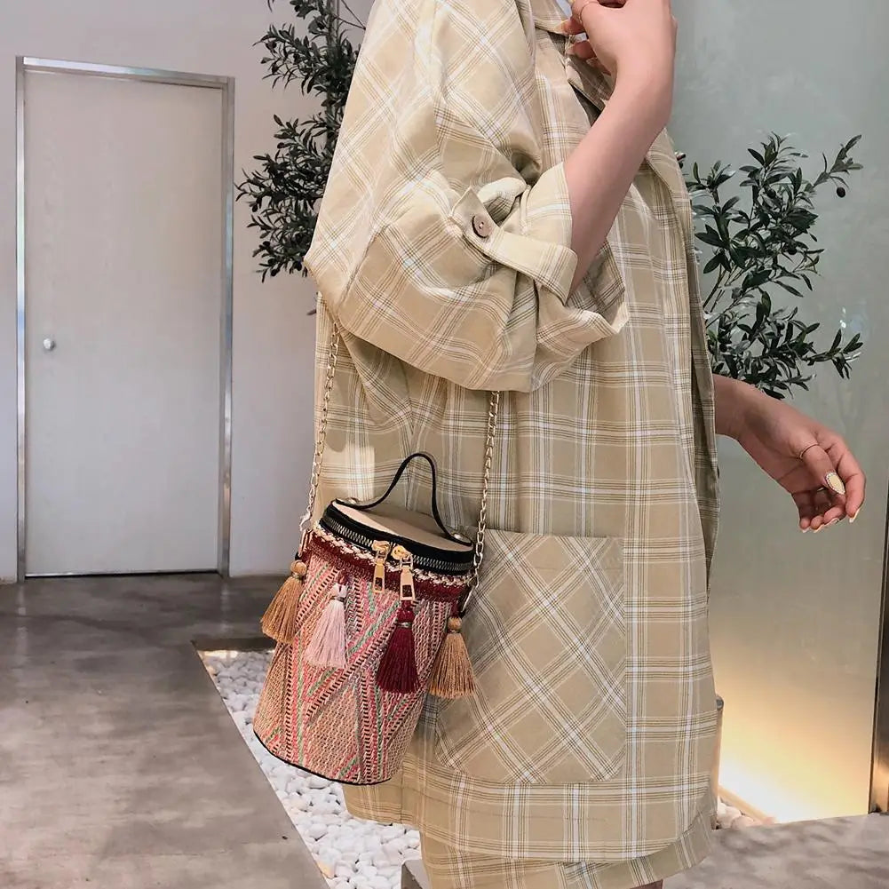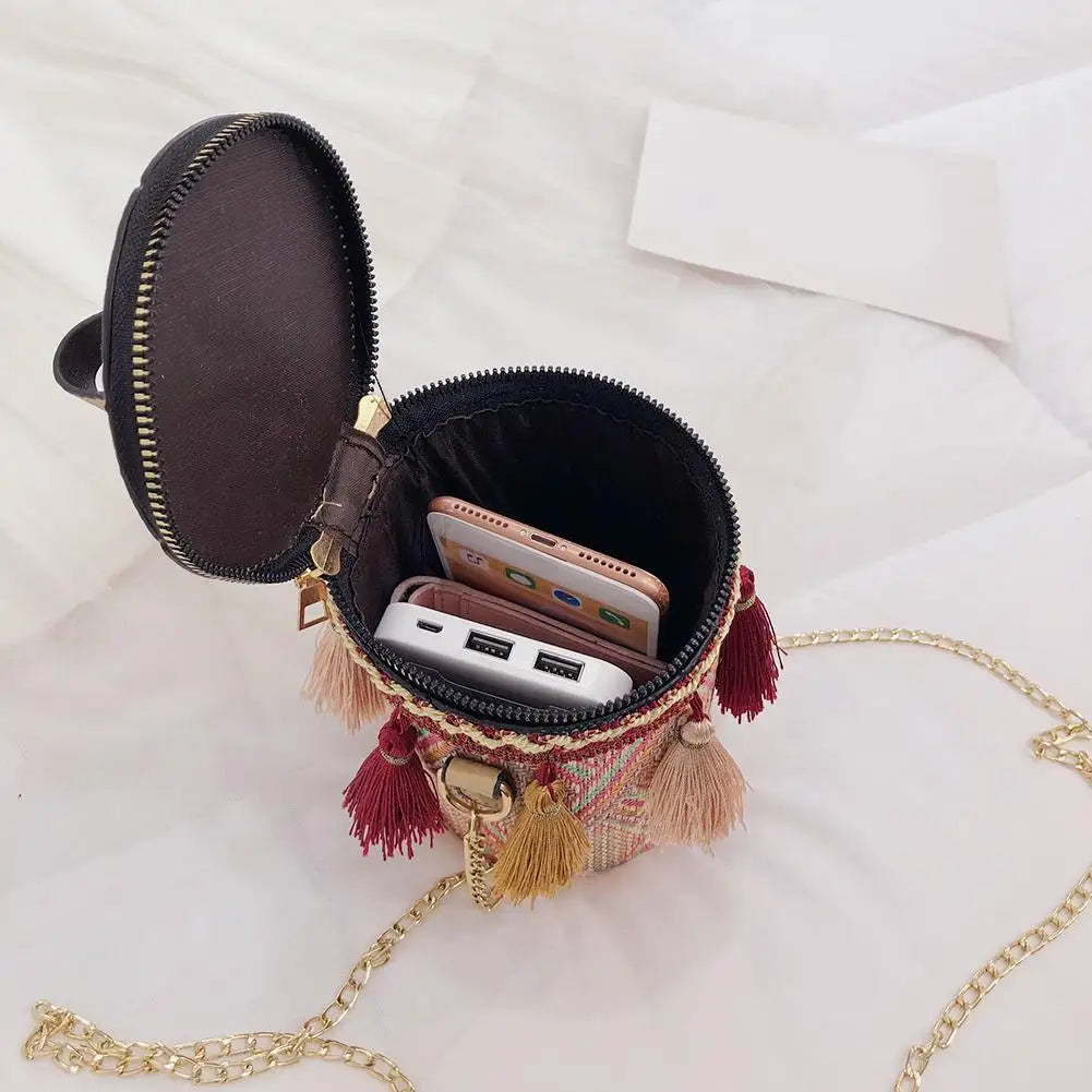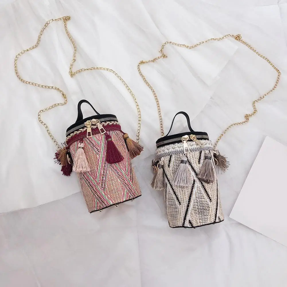 Ethnic Tassel Shoulder Messenger Handbags PU Leather Weaving Women Casual Small