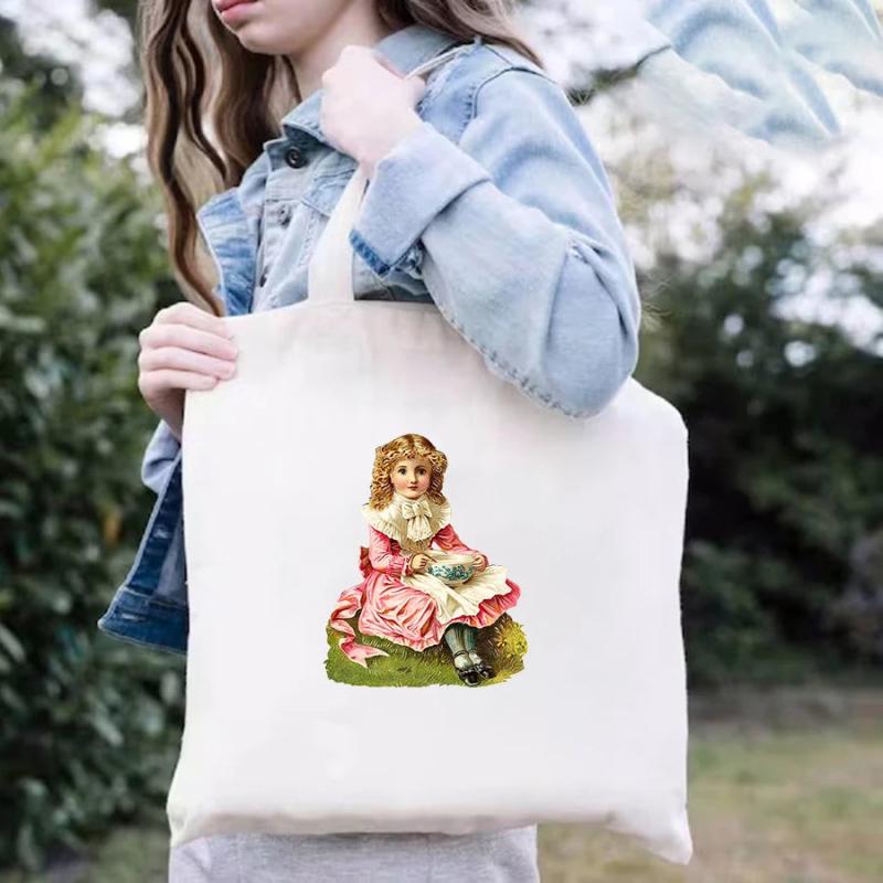 This European Baby Shoulder Bag features a beautiful Renaissance oil painting pattern, perfect for shopping or everyday use. Made of durable canvas material, this portable pouch is foldable and convenient to carry.