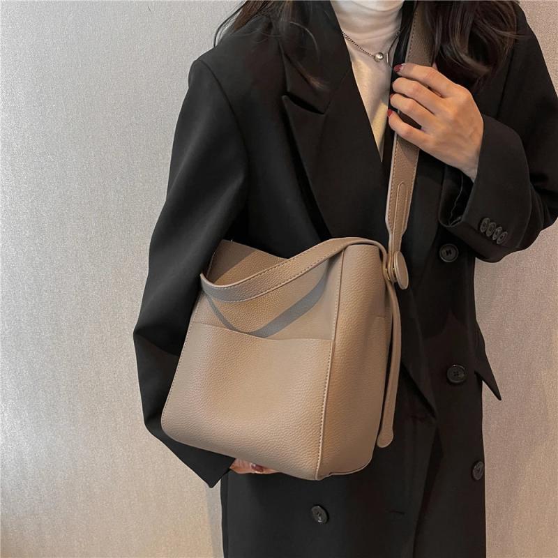 Stay stylish and organized this winter with this European style wide strap shoulder bag. It features a soft design with a large capacity, perfect for carrying all your essentials. This crossbody tote is a must-have for any fashion-forward lady.