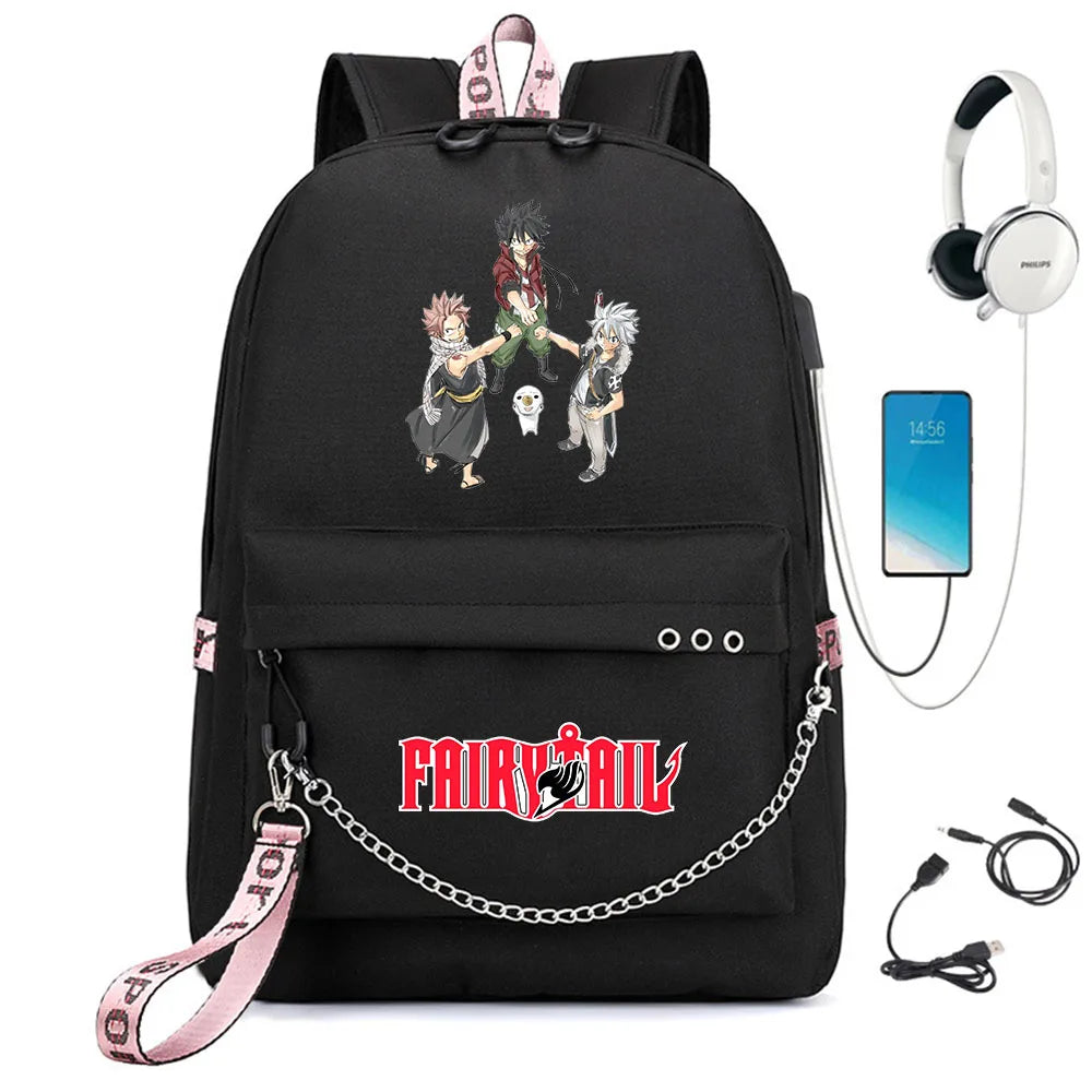 Fairy Tail Nylon Backpack Schoolbag USB Charge Teenger Travel Laptop Bag