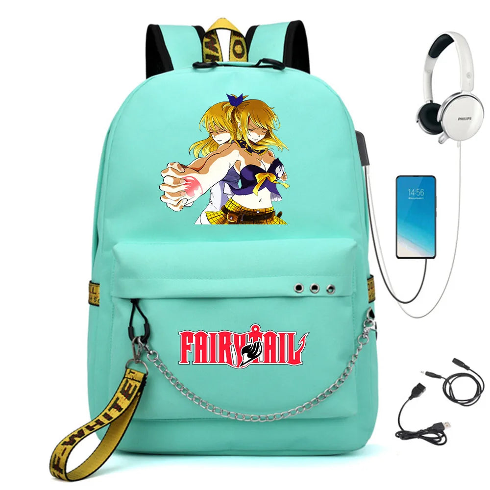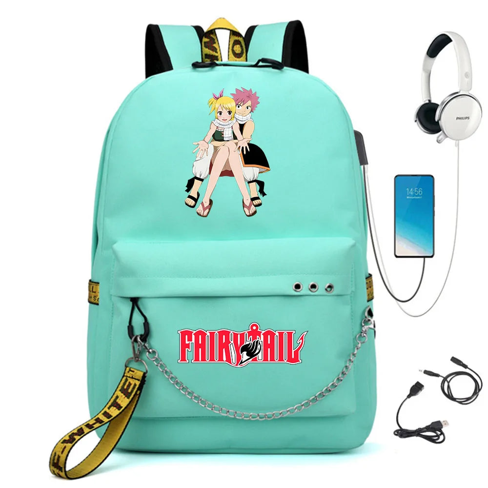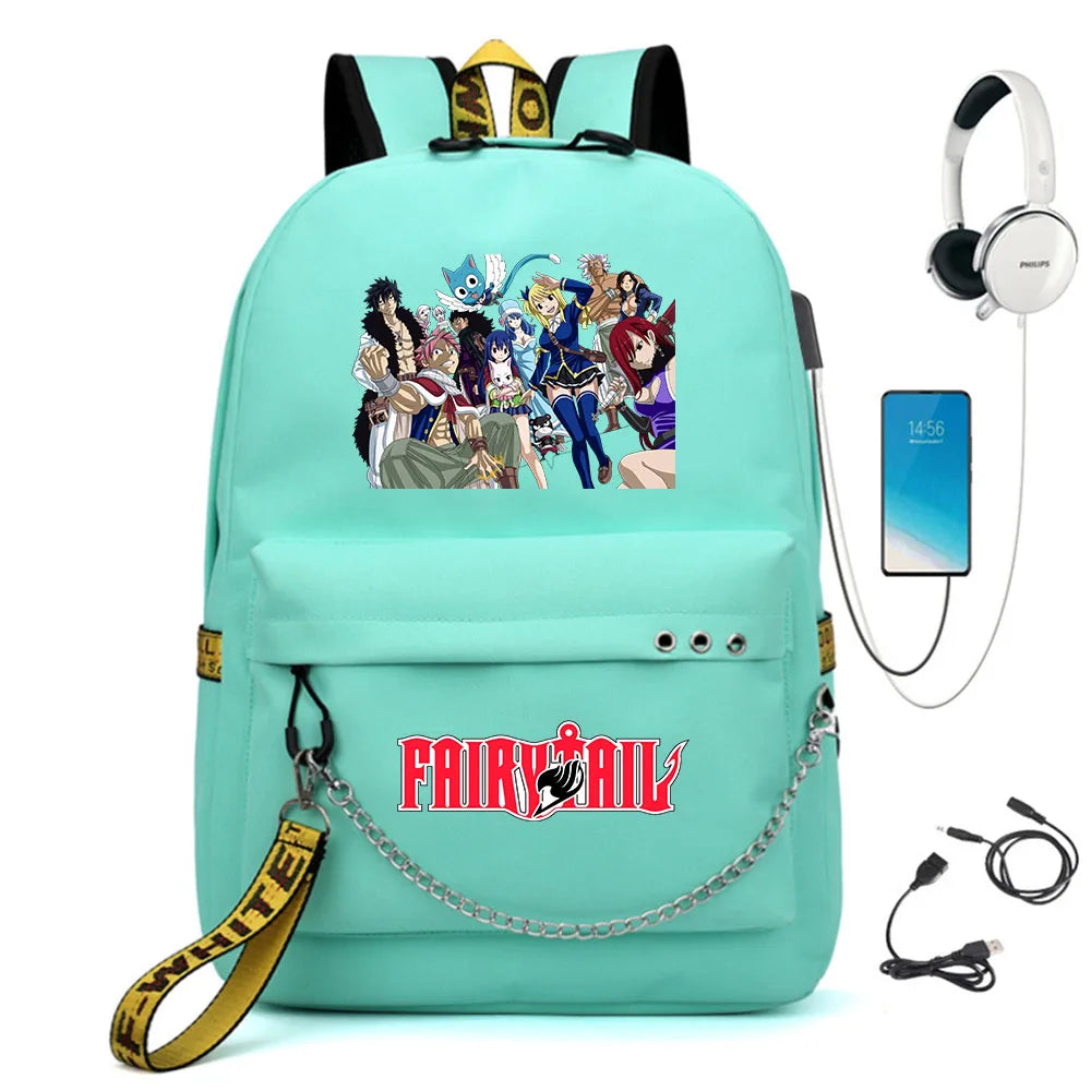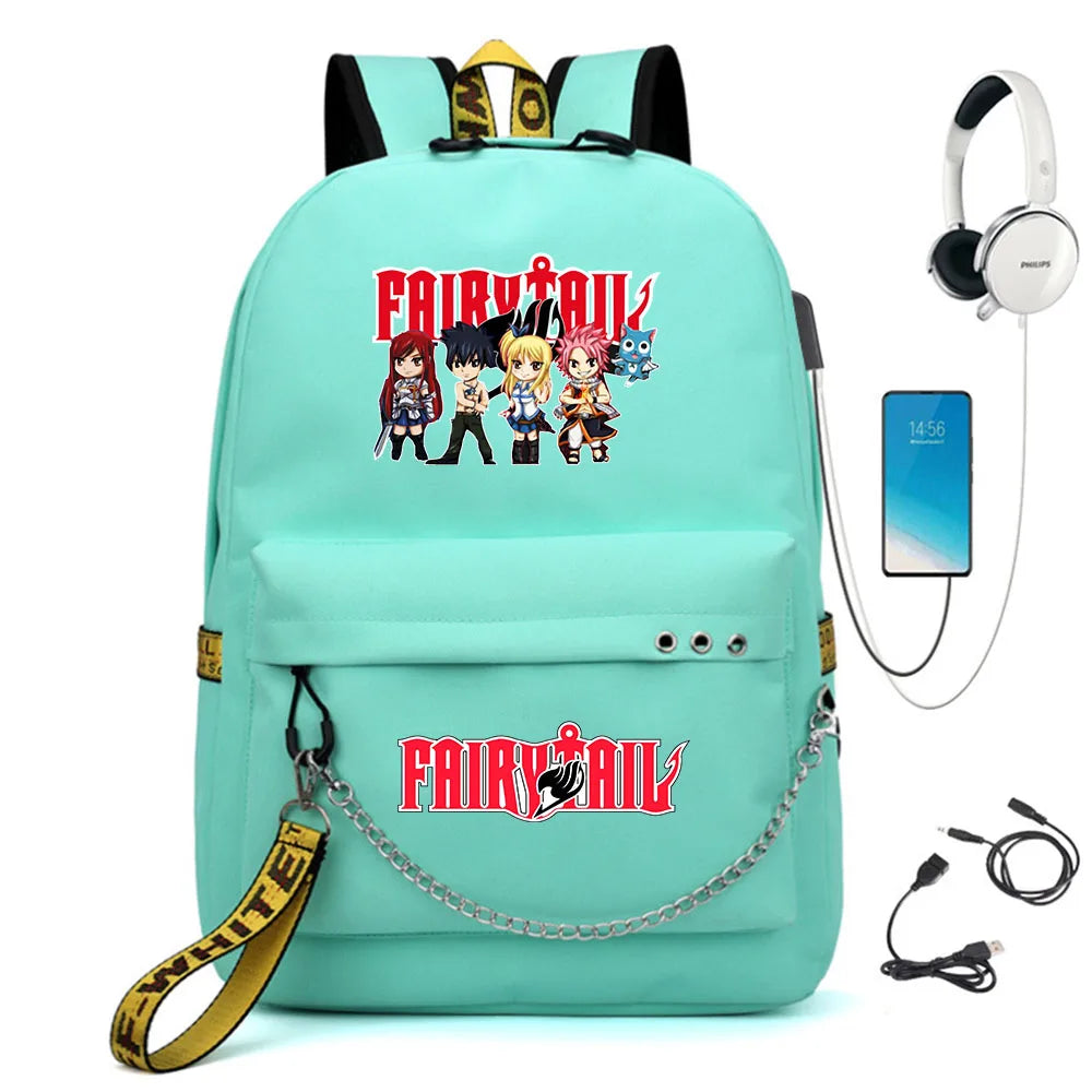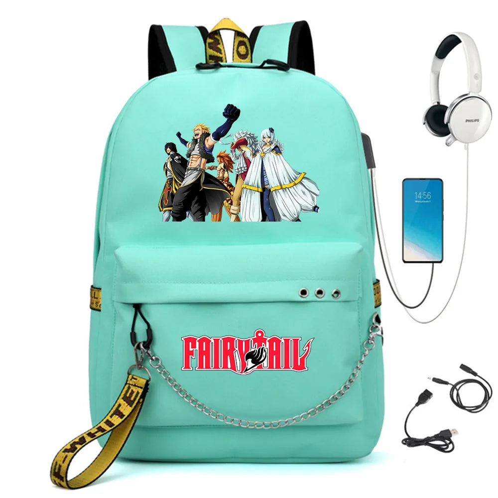 Fairy Tail Nylon Backpack USB Charge Schoolbag Student Laptop Bag