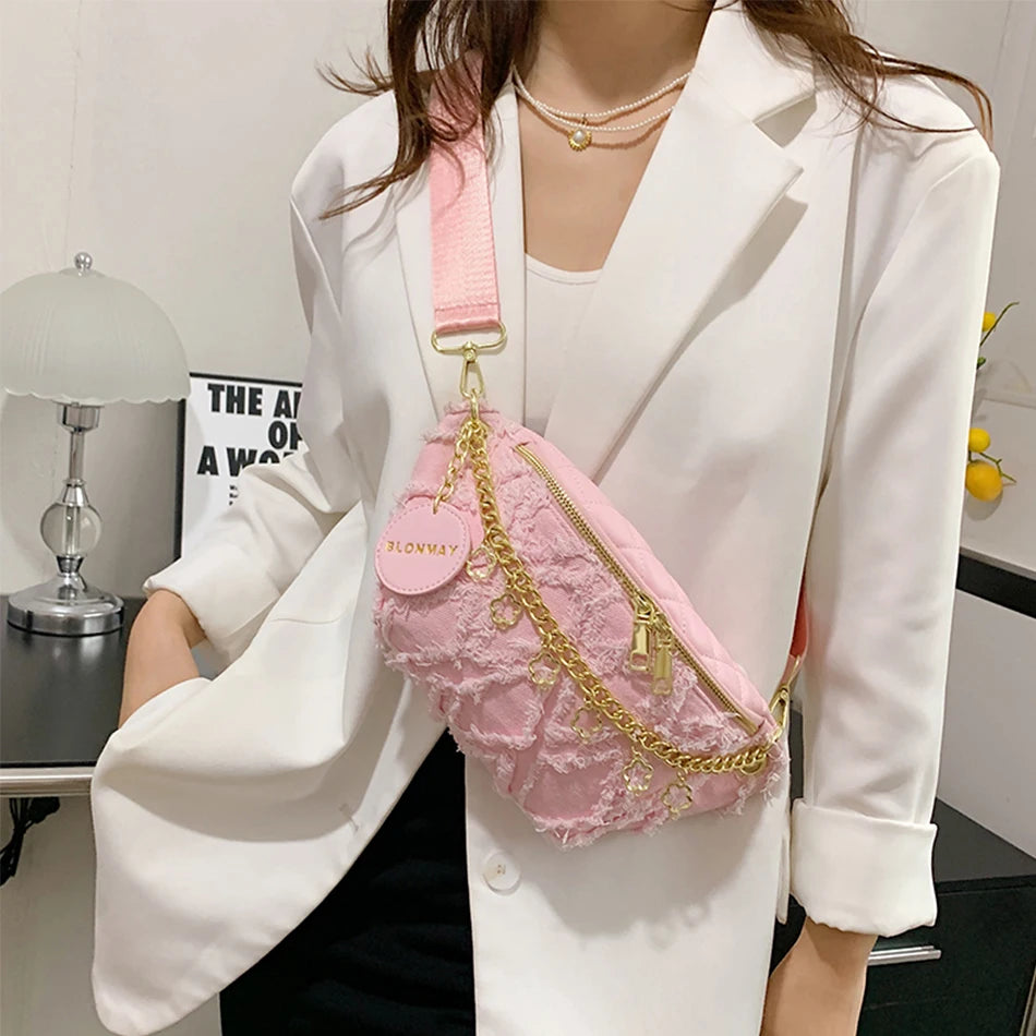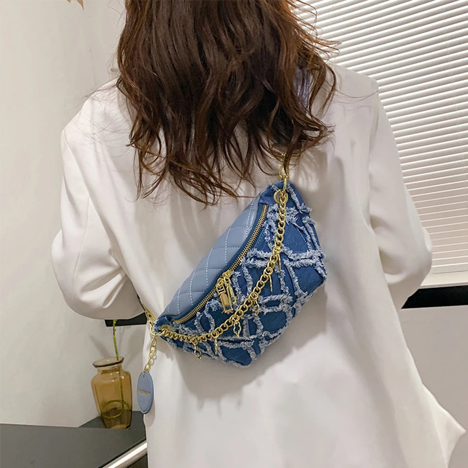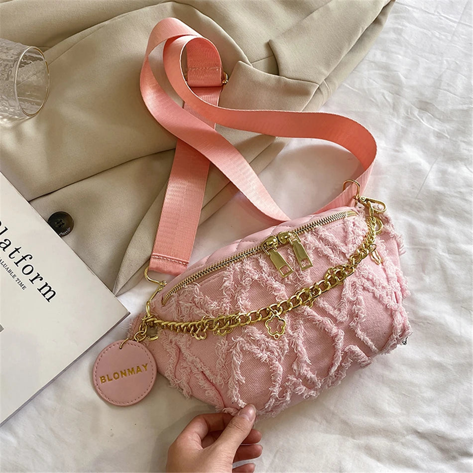 Fall Women's Chest Bag PU Leather Paneled Canvas Shoulder Bag Handbag Fanny Pack