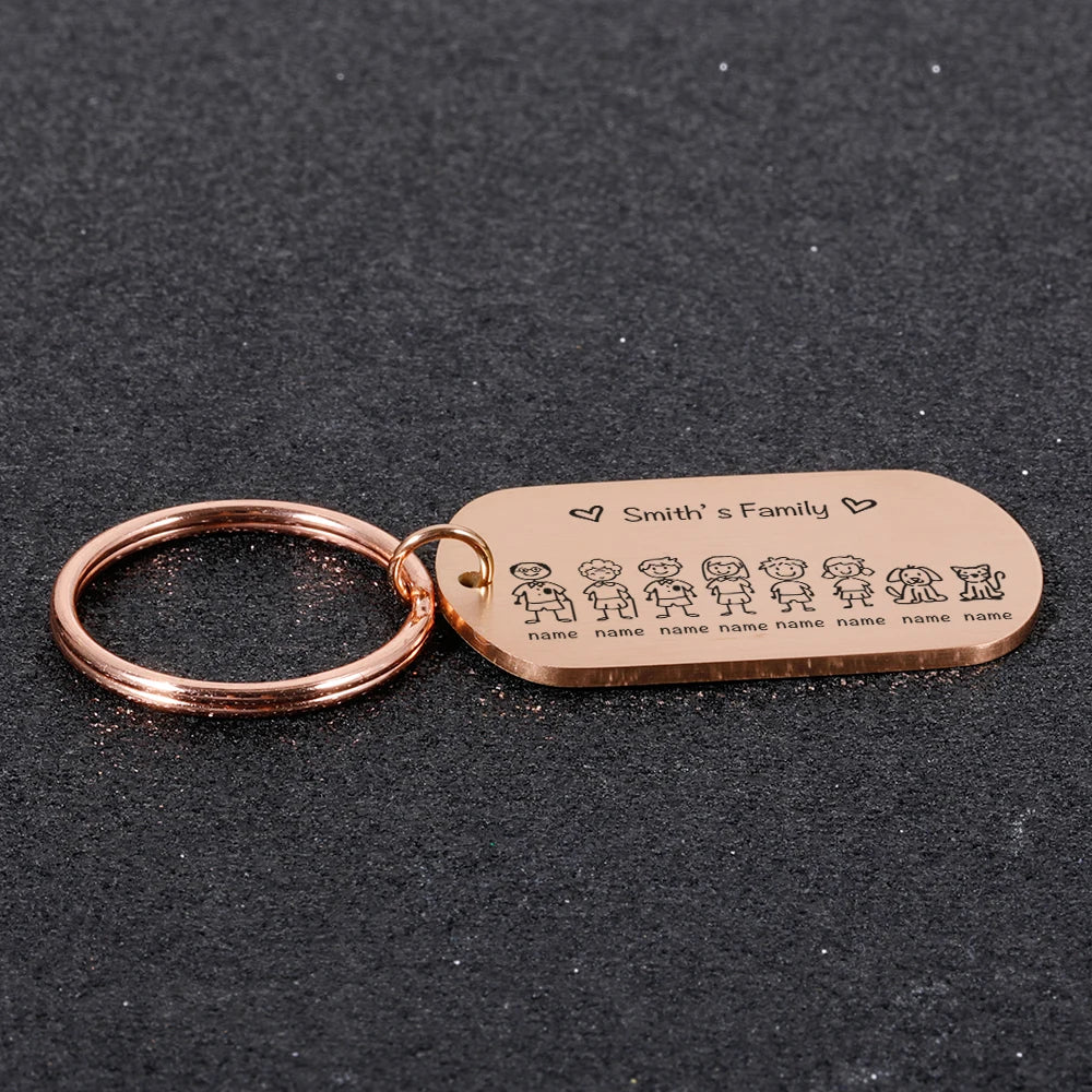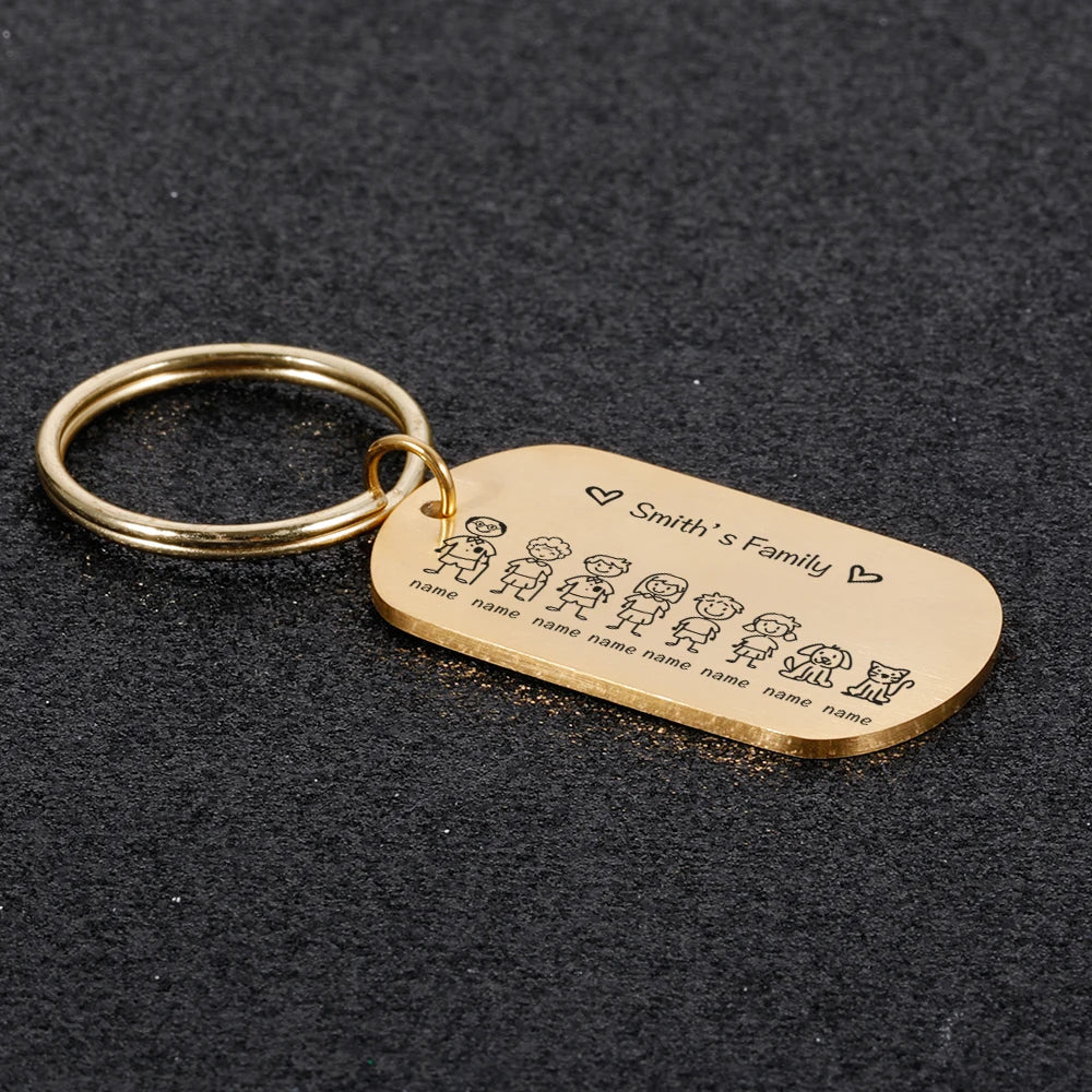 Family Name Engraved Keychain for Parents Children - Gift Keyring Bag Charm