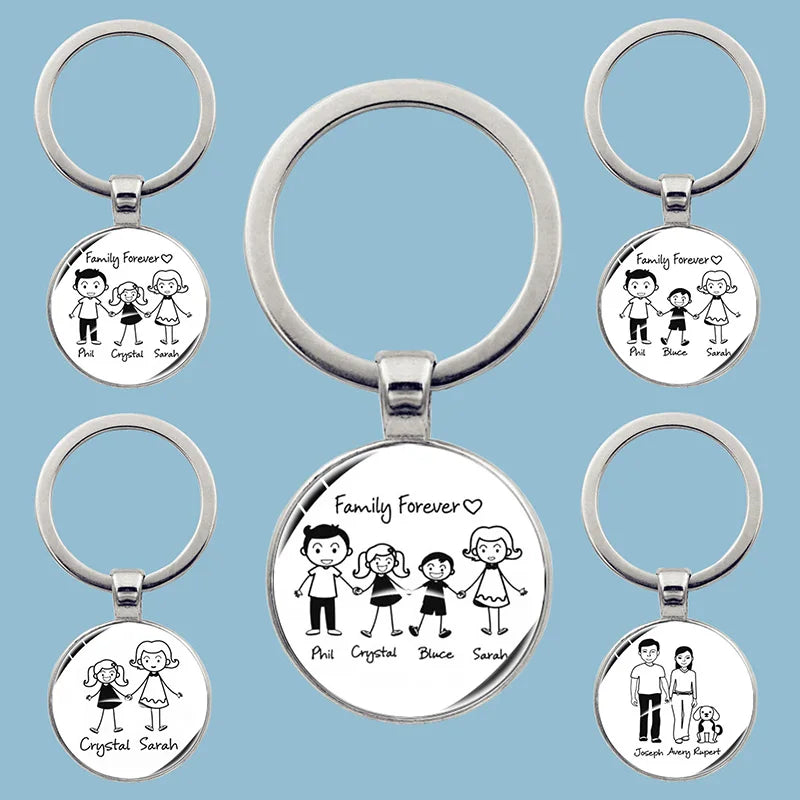 Family Photo Keychain Mom Dad Daughter Son Pet Trinket Backpack Accessories