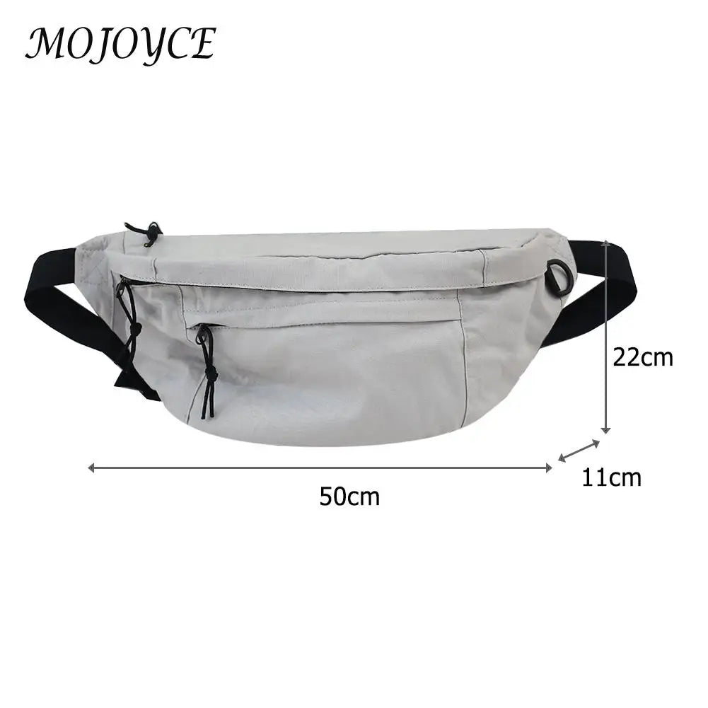 Unisex canvas waist pack with zipper, ideal for travel, street style.