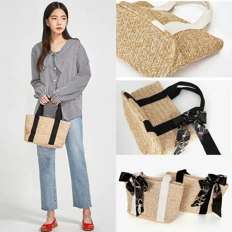 Fashiion Women's Round Rattan Straw Bag Summer Handbag Beach Casual Tote