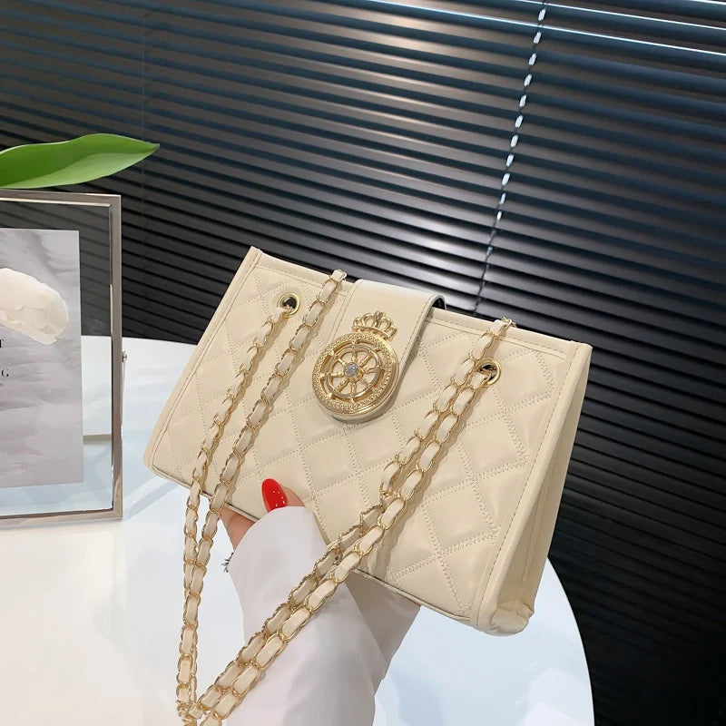 This stylish tote bag features a unique Lingge rotary lock design, making it the perfect accessory for any outfit. With a small fragrance and large capacity, it's a fashion-forward choice for those who love niche bags.