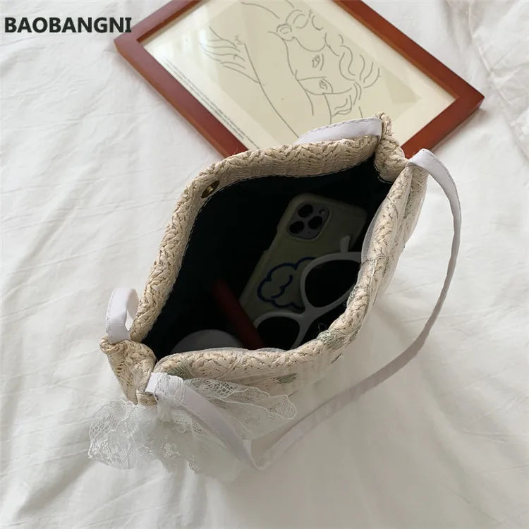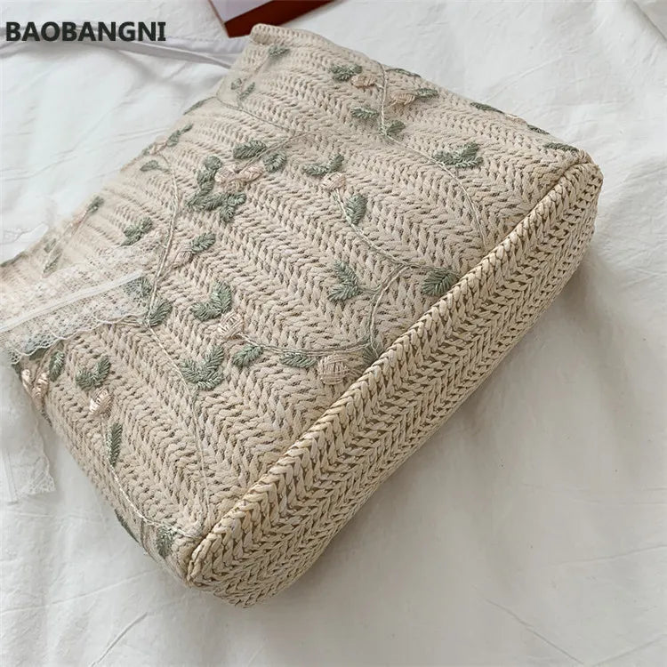 Fashion Straw Shoulder Bag Knitted Beach Handbag