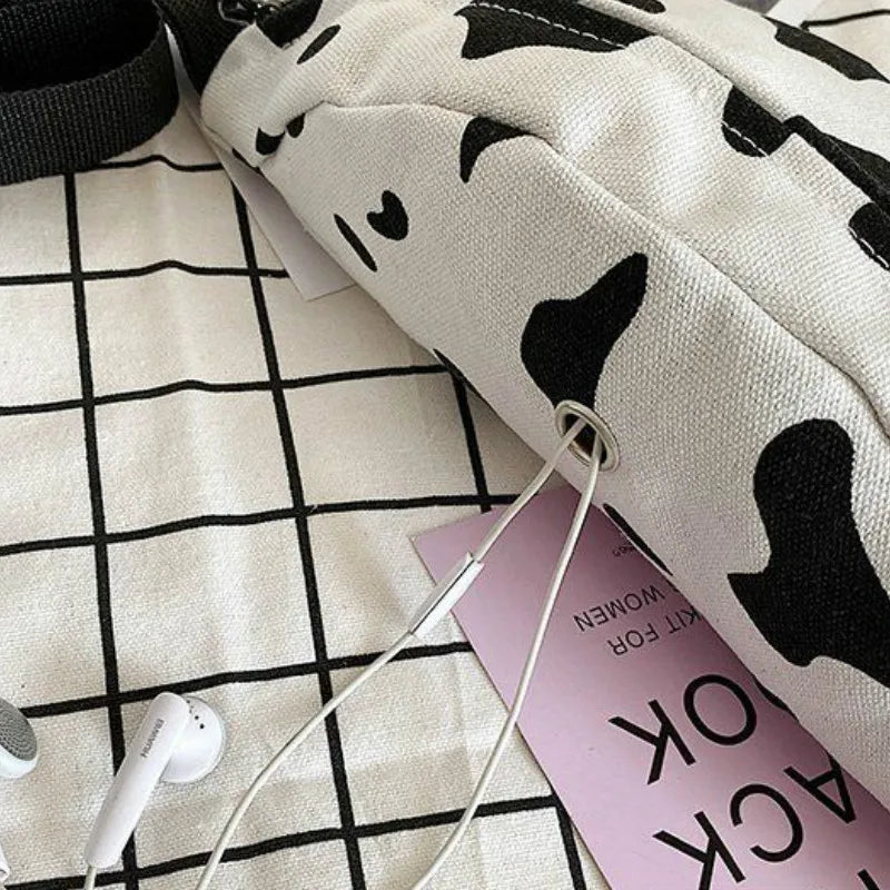 Stay stylish and hands-free with this vintage fanny pack featuring a trendy milk cow pattern. Perfect for ladies and girls who love casual accessories.