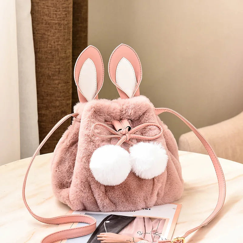 Faux Fur Cross Shoulder Bucket Hand Bag for Travel