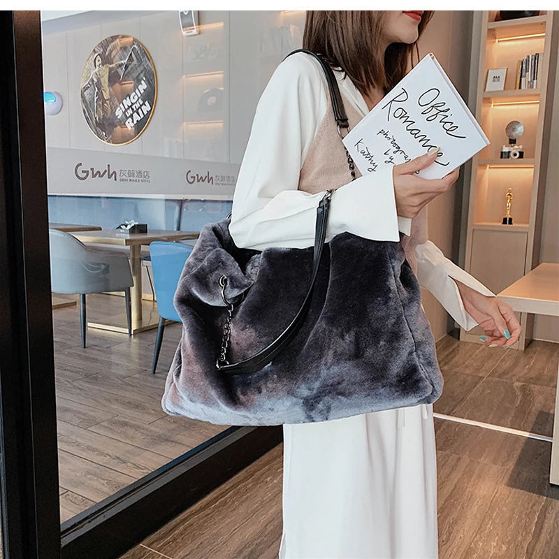 Faux Fur Tote Handbag Winter Shopper Ladies Shoulder Bag Plush Female Top Handle
