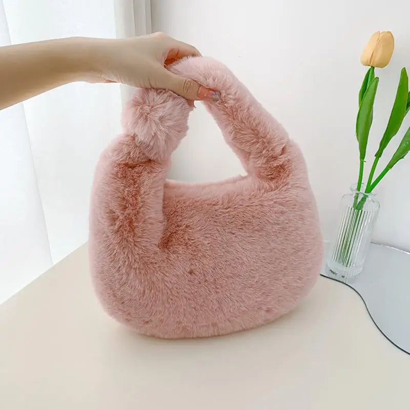 Faux Fur Women's Tote Bag Soft Plush Clutch Handbags Warm Purses Sac