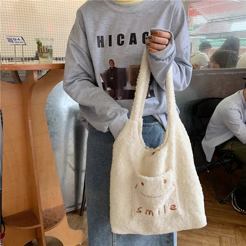 Faux Lamb Wool Women's Shoulder Bag Large Tote Handbags