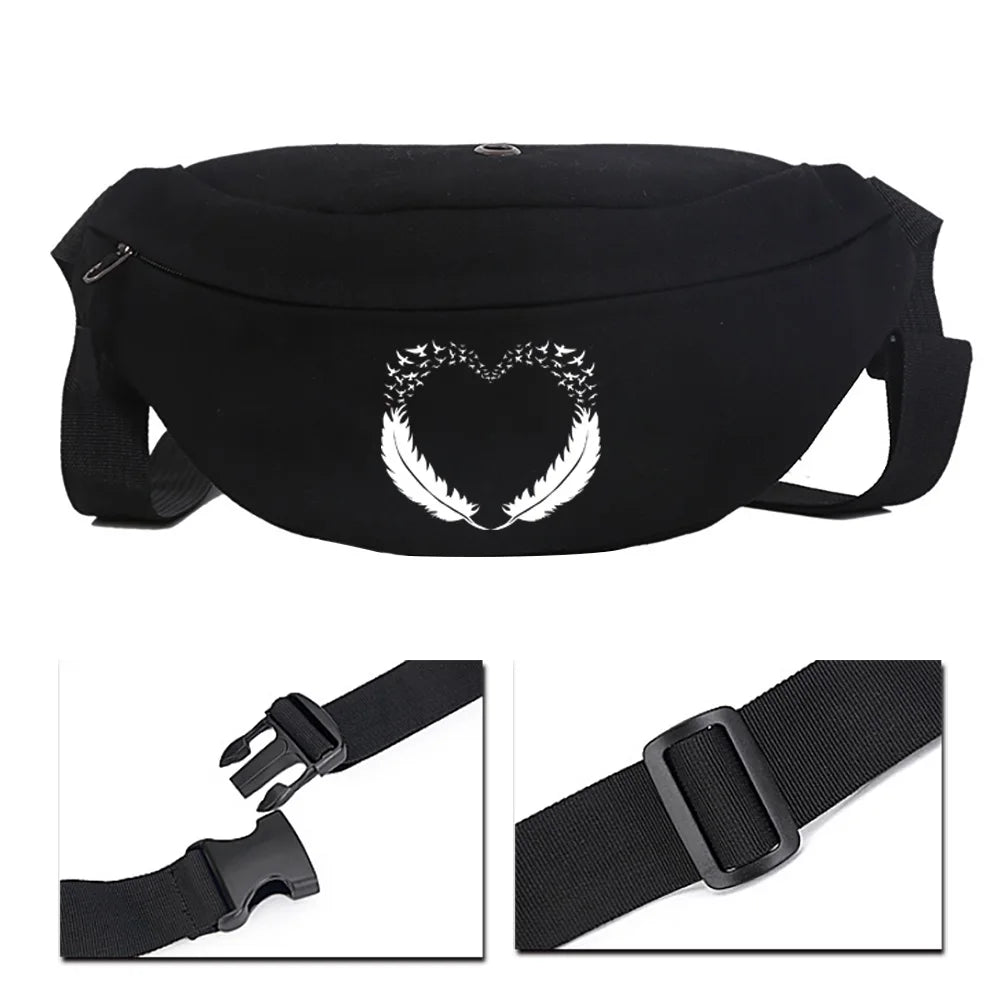 Feather Print Cycling Bag Street Shoulder Waist Tool Travel Crotch Bag