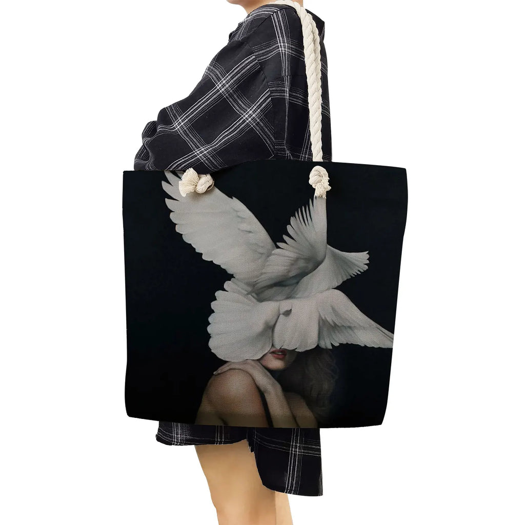 Feathers Woman Abstract Print Shoulder Bags Handbags Ladies Shopping Tote Bags