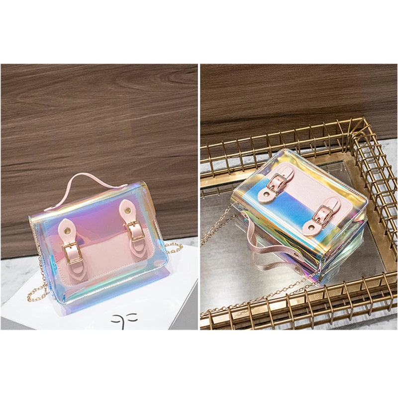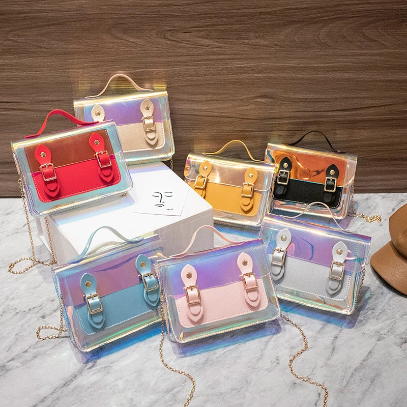 Female Laser Crossbody Bag Chain Bag Transparent PU Leather Mini Shoulder