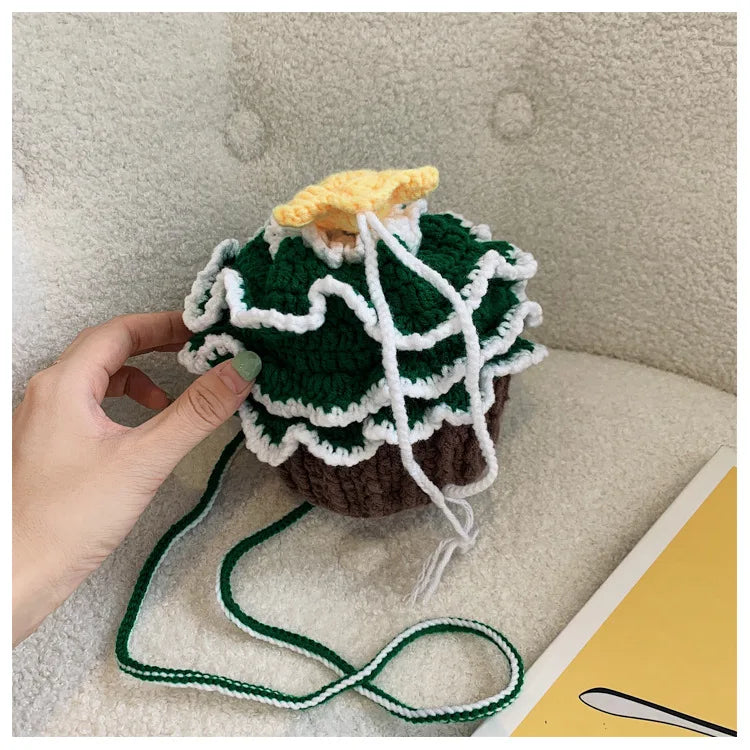 Floral Bucket Crochet Shoulder Bag Handwoven Woman Handbag B181