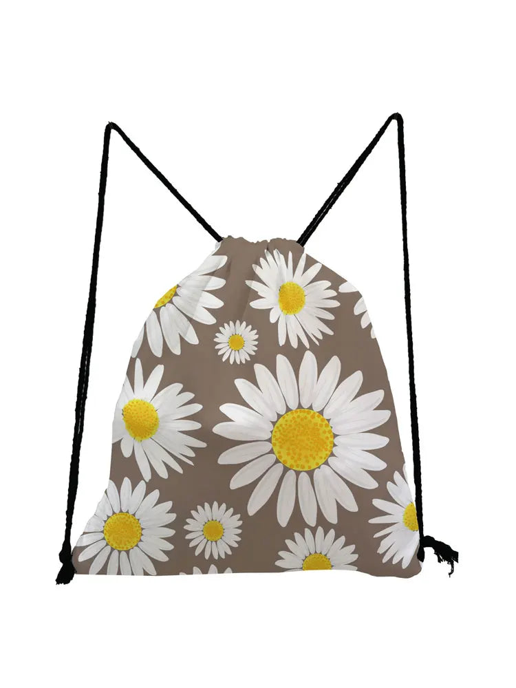 Floral Printed Drawstring Backpack Unisex Eco-Friendly Portable Storage Bag