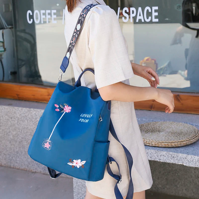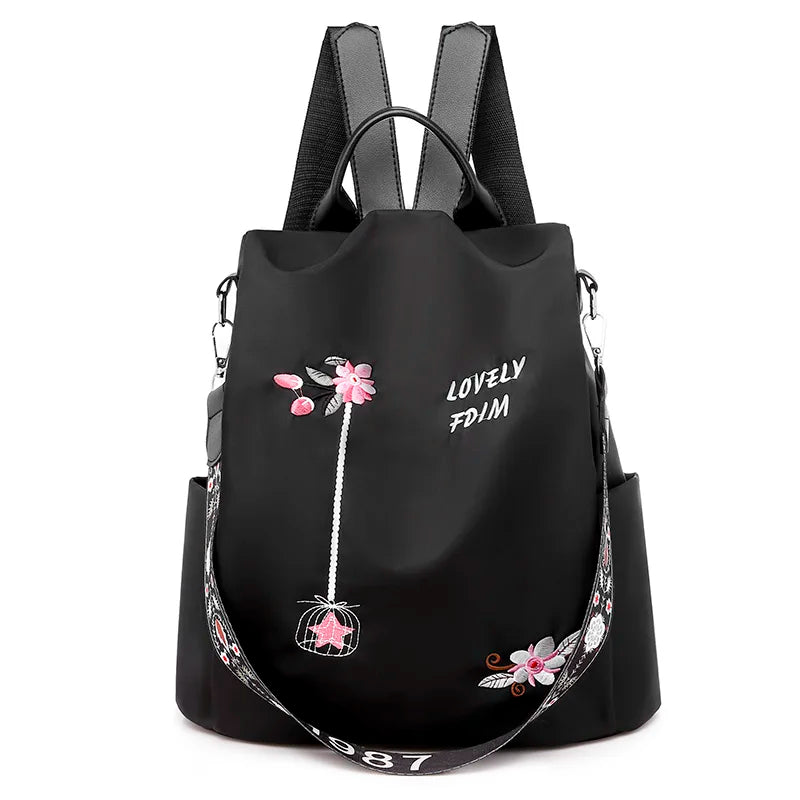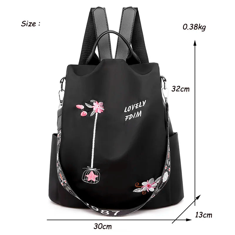 Flower Embroidery Women Backpack Female Daily Travel Bag Schoolbag