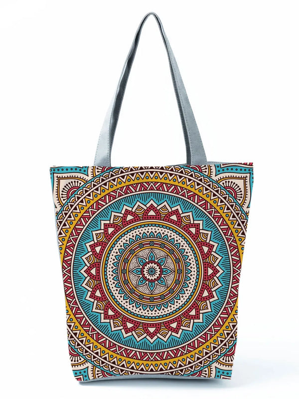 Flower Tote Bags Women Eco Reusable Shopping Bag Foldable Geometry Floral Print