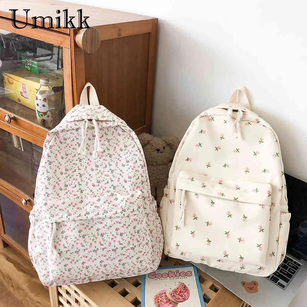Flower Women Backpack Student Zipper School Bag
