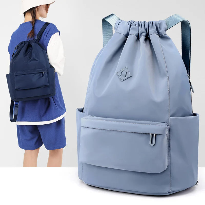 Stay stylish with this large capacity backpack that can also be used as a crossbody tote handbag. Made of durable oxford cloth with a string closure, this bag is perfect for women and girls on the go.