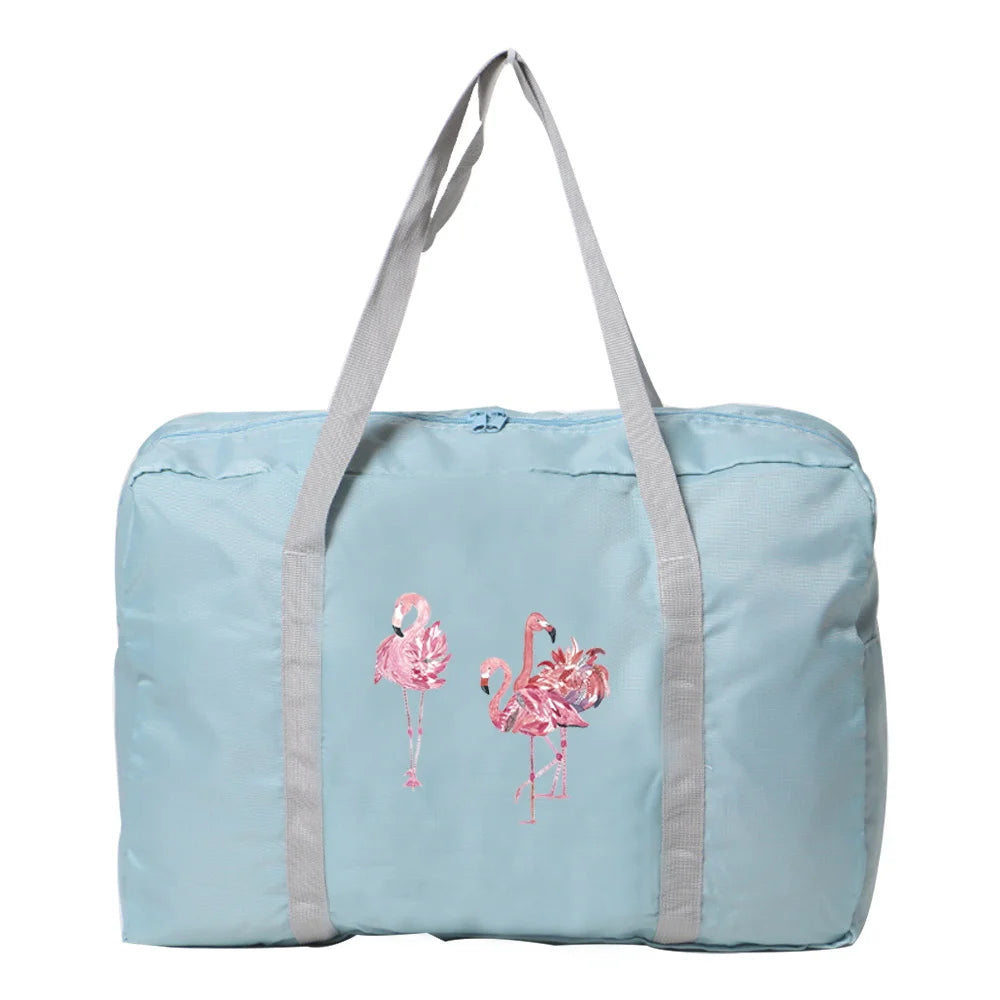 Foldable Storage Accessories Bags Handbag Flamingo Print Zipper Luggage Bag