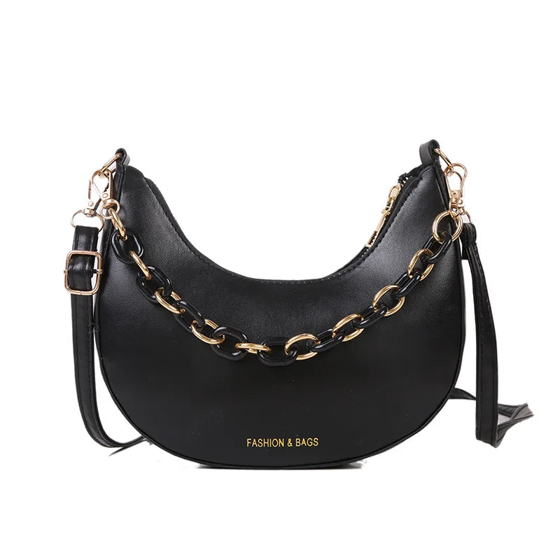 This stylish bag features a crescent design, perfect for carrying essentials in style.