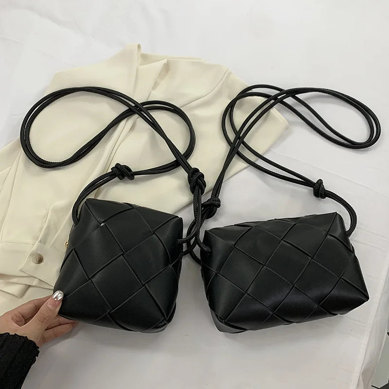 French Style Cross Woven Leather Messenger Bag