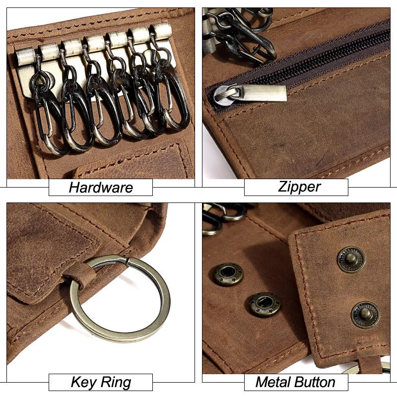 - Includes card slots, cash compartment, and key holder