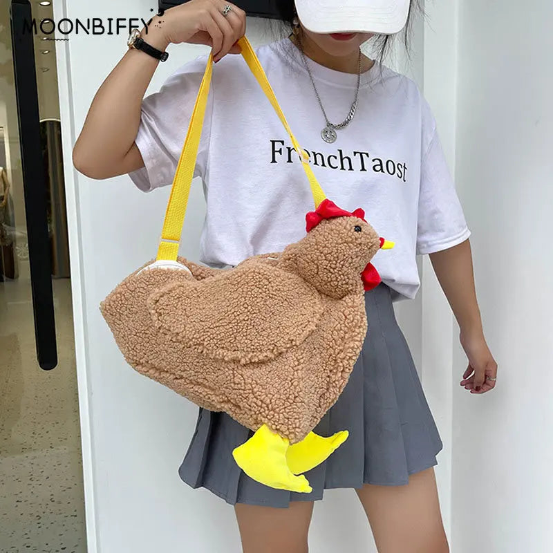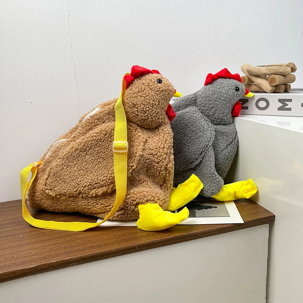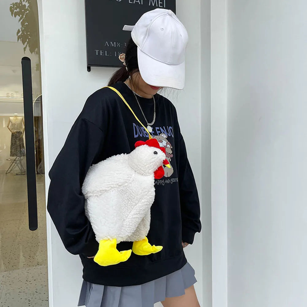 This hilarious hen-shaped plush bag is perfect for adding a touch of fun to your outfit. It features a cute cartoon chicken design and can be worn as a crossbody or shoulder bag.