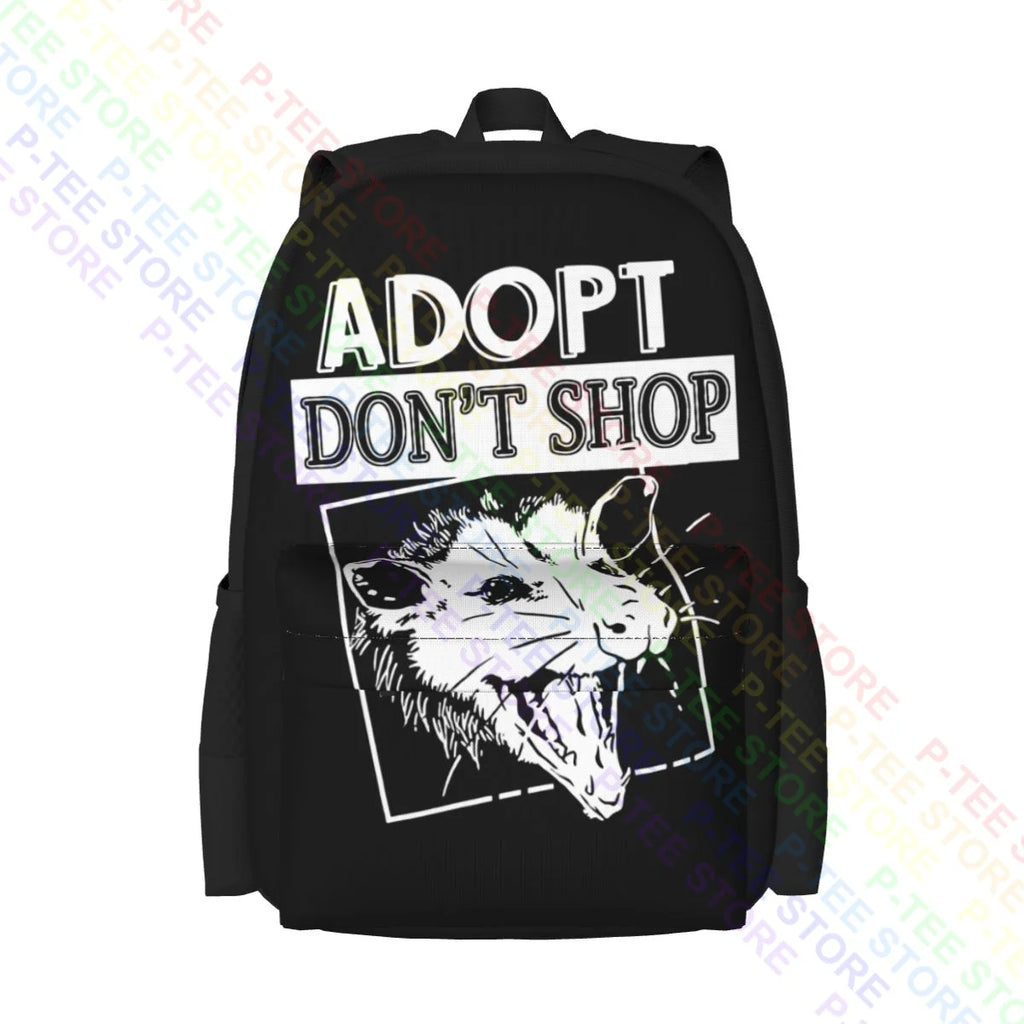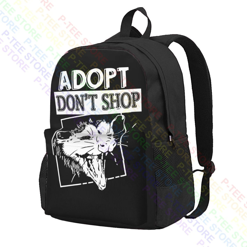 This large capacity backpack features a hilarious 'Don't Shop Screaming Possum' sarcastic saying phrase design.