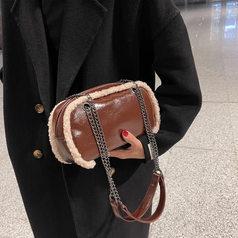 Furry Leather Crossbody Handbag Shoulder Bag
