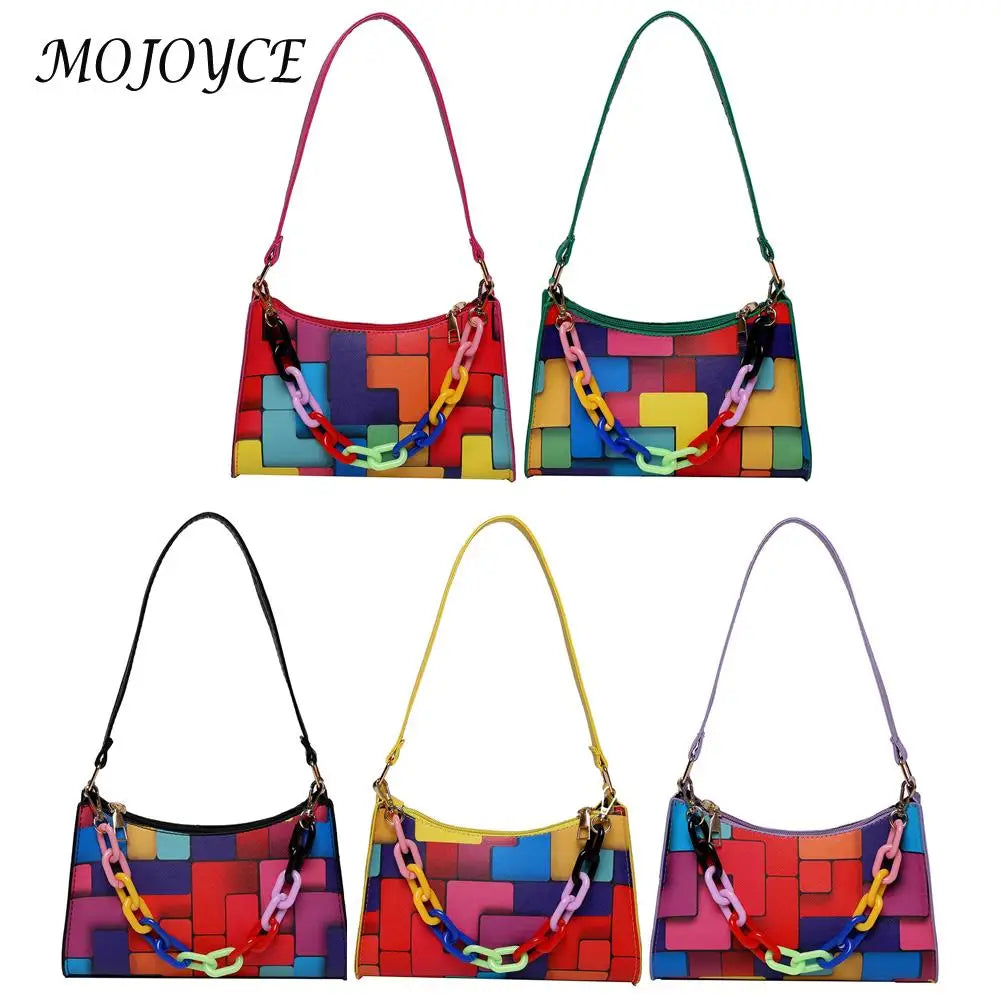 This stylish geometric leather clutch bag is perfect for adding a touch of elegance to your outfit. The underarm chain makes it easy to carry, while the sleek design is ideal for both casual and formal occasions.