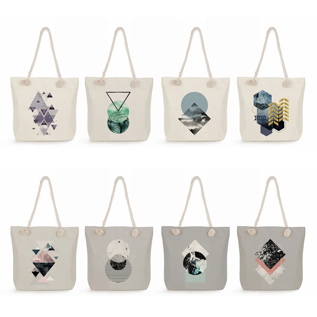 Geometry Print Women Lady Handbags High Folding Reusable Shopper Bags