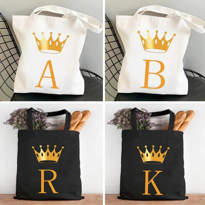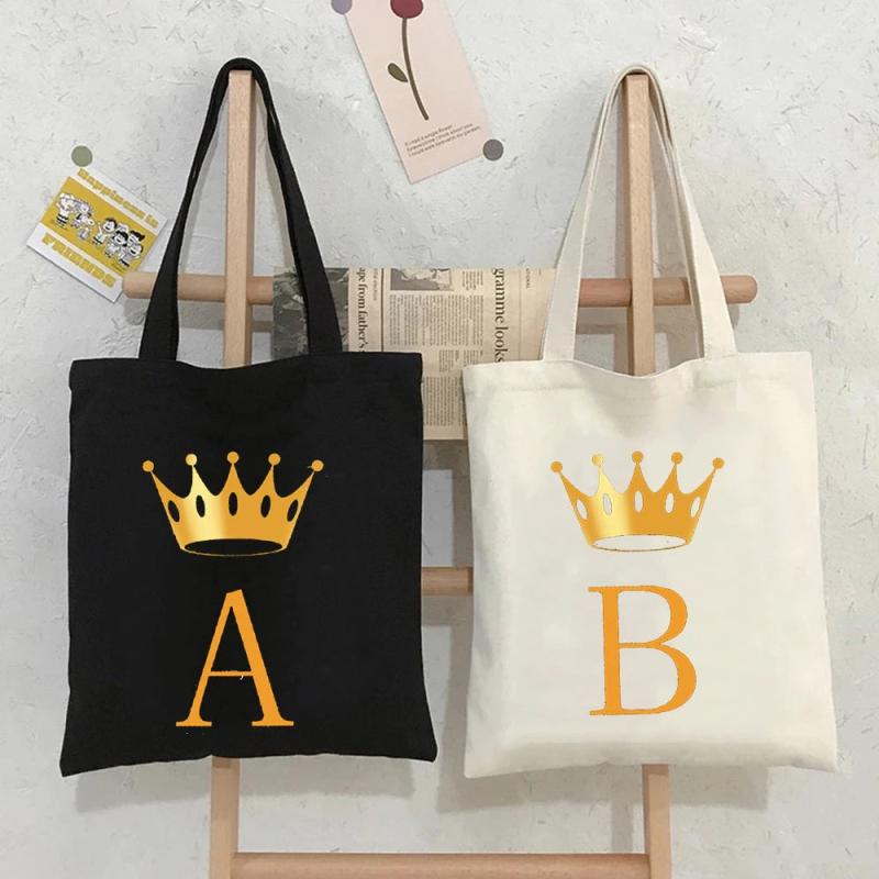 Golden Alphabet Women Shopper Bag Canvas Tote Shoulder Lady Shopping Bag