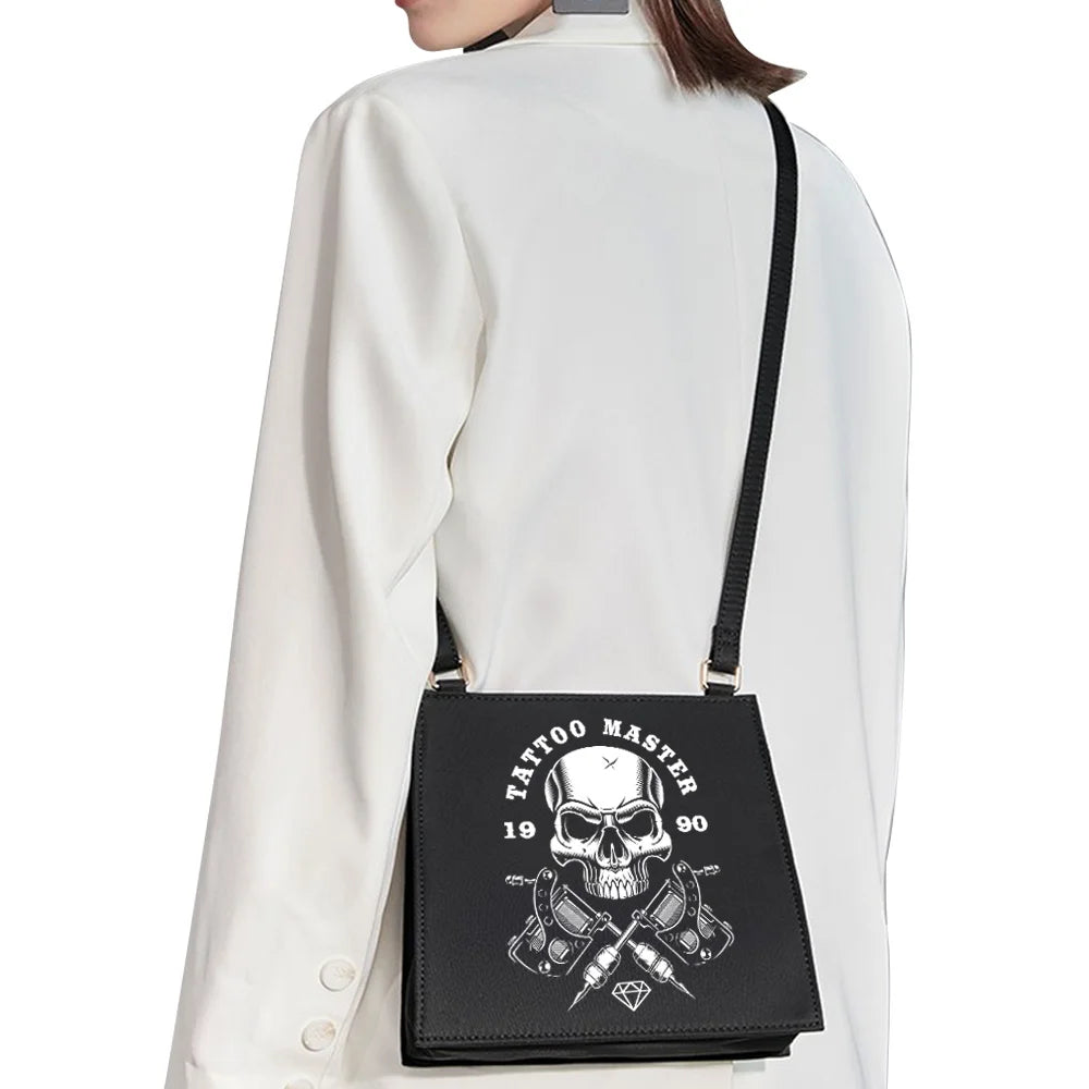 This stylish shoulder bag features a gothic skull pattern, perfect for parties or evening events. It's a versatile handbag that adds a bold touch to your outfit.