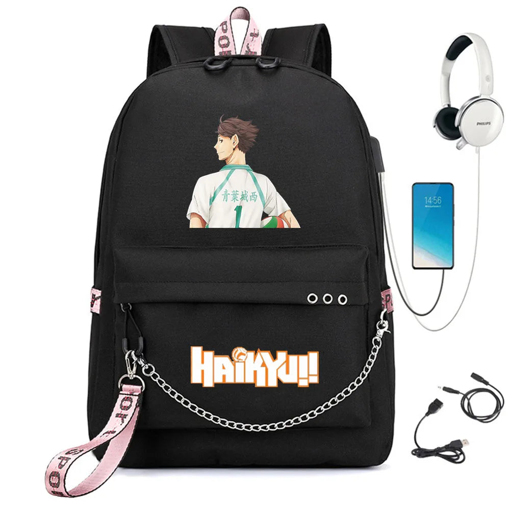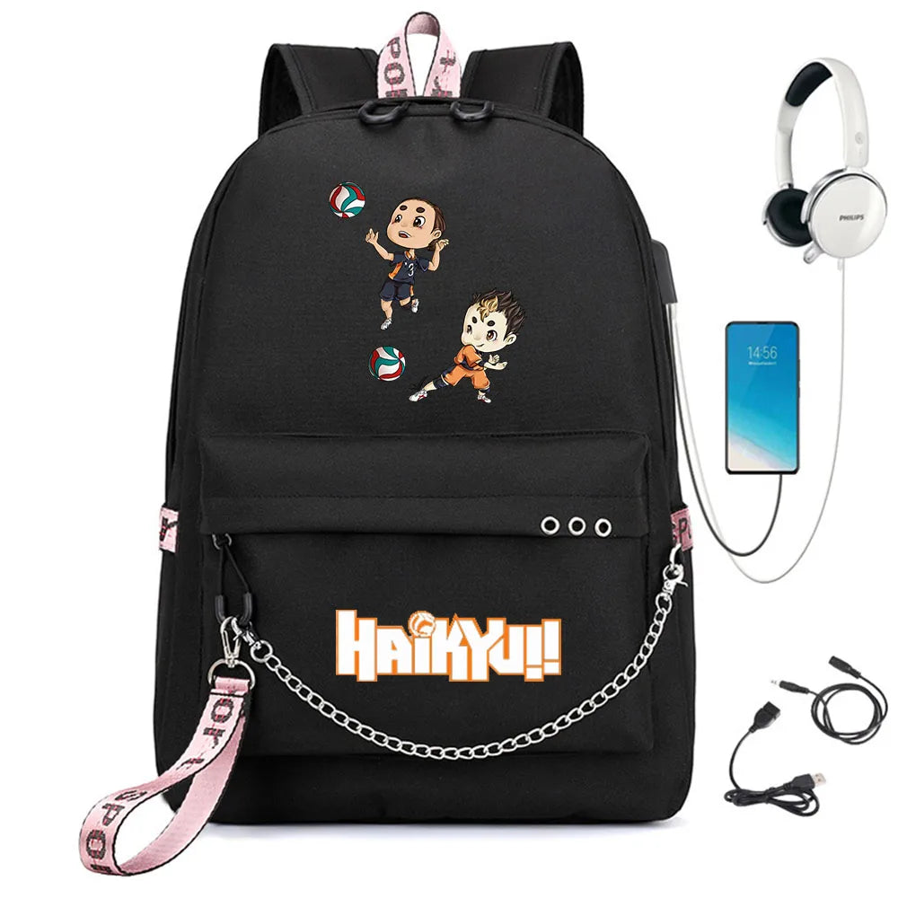 Haikyuu Nylon Backpack Schoolbag USB Charge Cartoon Teenger Travel Laptop