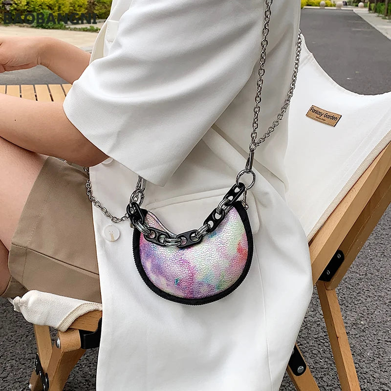 Stay stylish this summer with this chic Half Moon Mini Tote bag crafted from high-quality PU leather. It features a chain shoulder strap and can be worn as a messenger bag or a purse.